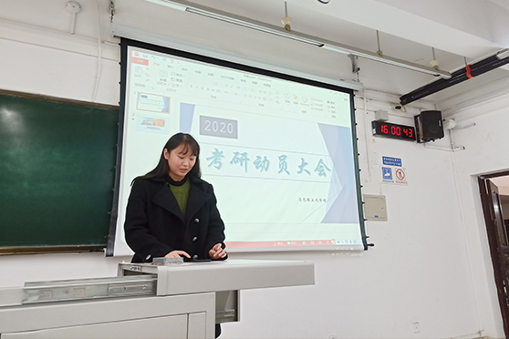 10月29日16:00,招就处主办、威尼斯官网承办的考研工作室在犀浦校区X1225教室举行考研动员大会。本次讲座由郭修远同学主持,主讲人为37000cm威尼斯本科2018级班导师王迎迎老师以及37000cm威尼斯本科生辅导员杜晓林老师。动员对象为37000cm威尼斯本科2018级全体学生。